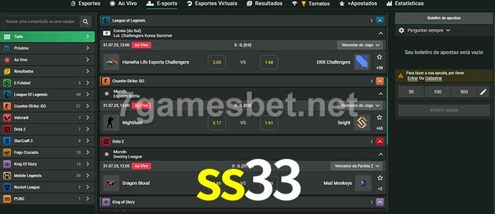 O ss33 oferece uma grande seleção de opções de apostas em e-sports com probabilidades competitivas